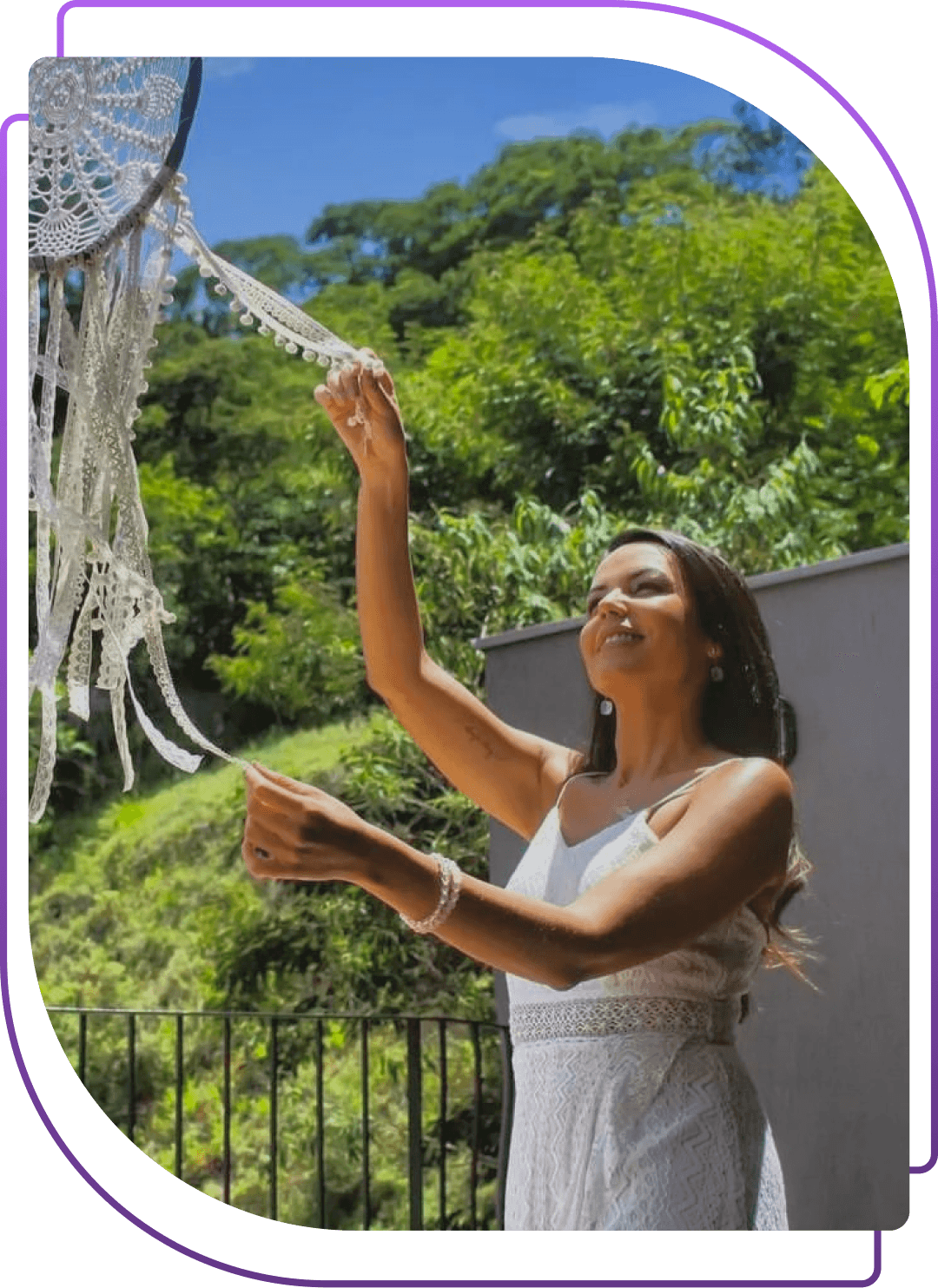 Enfermeira, Terapeuta holística, Instrutora e Mentora de Breathwork - Nível 1, 2 e 3. Desde 2020, guio pessoas ao autoconhecimento e autotransformação por meio de técnicas terapêuticas como o Thetahealing®, Reiki e Quantum Being (escuta das emoções), além de Mentorias individuais e coletivas de Breathwork (presencial e online).